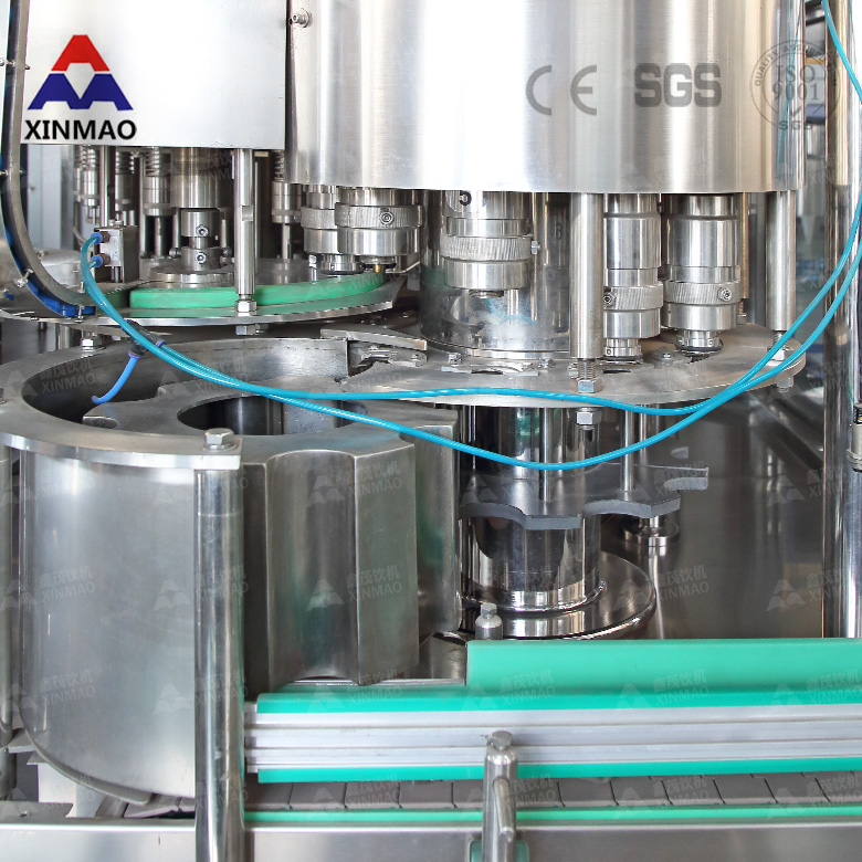 4、PET瓶純凈水灌裝機灌裝方式:采用新型的微壓灌裝,使灌裝速度更快更穩定,所以與同規格的機器相比本機產量更高,效益更大。