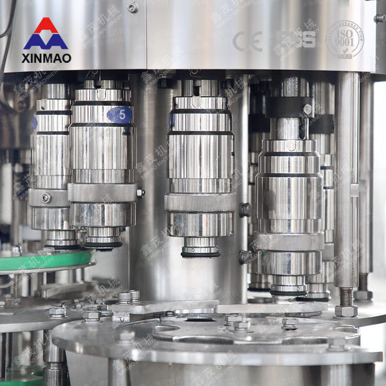 果汁飲料機械是我公司自行設計,灌裝閥擁有自主知識產權,運用壓力灌裝負壓式回流的原理。