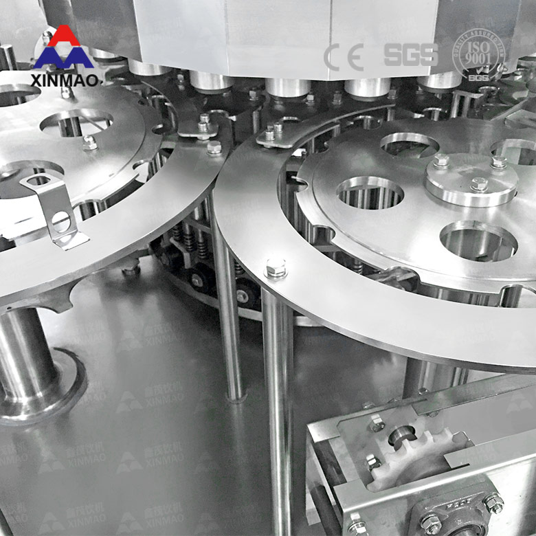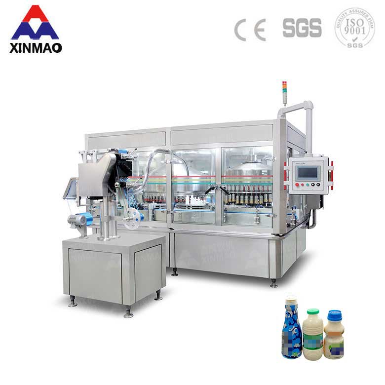 鑫茂飲料機械廠家制造的乳飲品鋁箔蓋封口灌裝設備具有結構緊湊、自動化程度高、使用方便、維修保養簡單、生產效益高等特點。可24小時連續工作。乳飲品鋁箔蓋灌裝設備集掛口灌裝-制蓋上蓋-電熱封口為一體的自動灌裝機組。