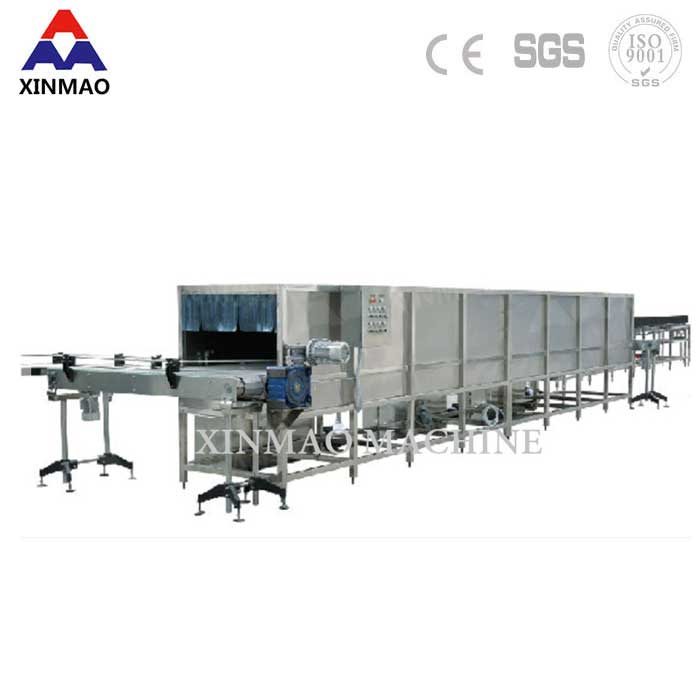 噴淋殺菌冷卻機采用了噴淋到較涼的容器上的水將會變熱,這部分較熱的水被用來冷已經被殺菌處理過了的較熱的容器,以便容器進行逐步冷卻,這樣既可以避免過熱而造成的口味損失,又能夠防止容器熱應力的突變而產生碎瓶或瓶變形。并且加熱區域和冷卻區域相互連接起來后,能量就得到了很好地再生利用——這就是稱這為能量再生原理。隧道式殺菌機充分利用了這一熱熱量平衡原理,能耗非常低,只有殺菌區域使用了有限的能源。