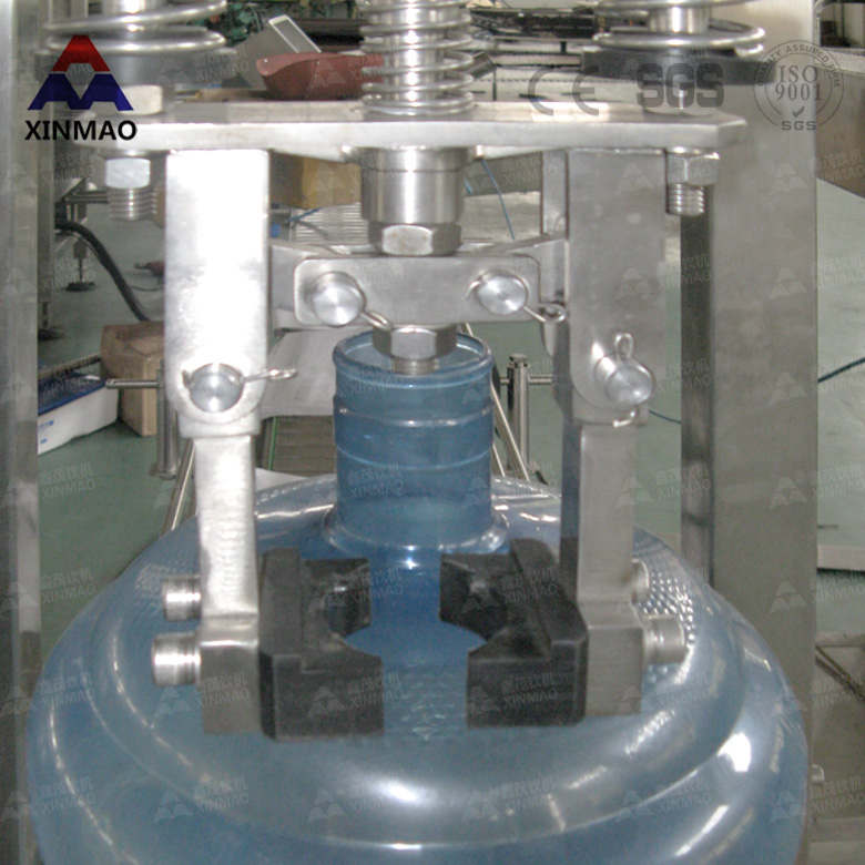 桶裝水灌裝生產線主要由機架、水箱、管道、水泵、氣缸、傳動、電器等組成,需要完成空桶沖洗,灌裝、壓蓋等動作,通過多道沖洗工序,定量灌裝,自動帶蓋壓蓋。桶裝水灌裝生產線全部由電腦控制,實現穩定的沖洗效果,精確的灌裝容量,密封的壓蓋效果。