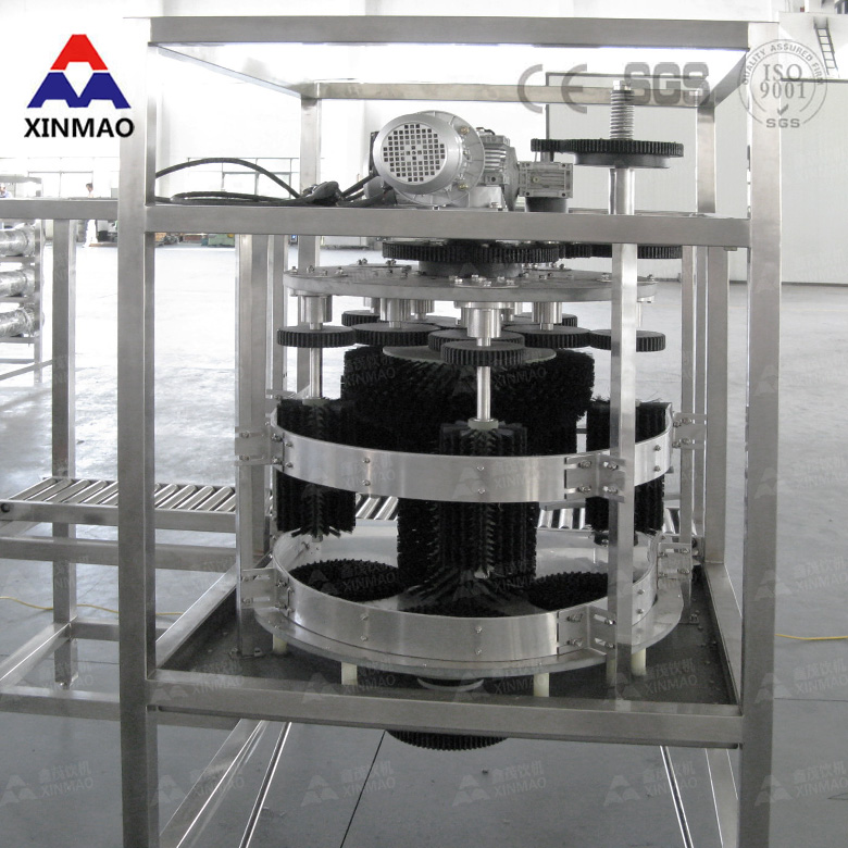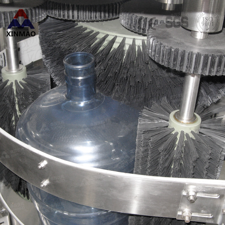 桶裝水灌裝生產線將沖洗、灌裝、旋蓋等功能于一體上,全過程實現自動化灌裝且各部分的適用瓶型調整采用手柄轉動實現,輕松自如,簡便快捷。桶裝水灌裝生產線采用了先進的可編程控制器(PLC)控制機器的自動運行,進瓶鏈道采用變頻器調速,與主機變頻器相互配合使進瓶運行更穩定可靠。光電檢測各部件的運行狀況,所以自動化程度高,操作簡便。 洗瓶采用四道獨立控制的雙(單)排高壓噴射系統,消毒液循環使用,沖洗液循環排放有多種選擇。