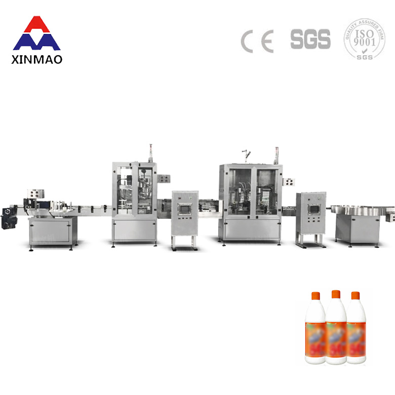 消毒液直線式灌裝機是一種由PLC控制光電傳感氣動執行于一體的灌裝設備。本直線式灌裝機主要用于醫藥類液體及消毒液等的灌裝。